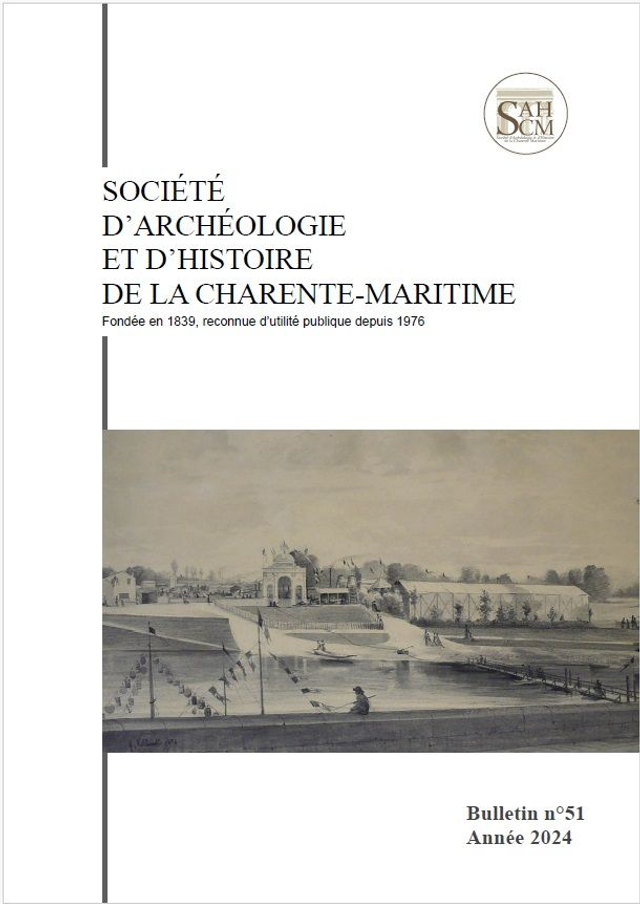 Le Bulletin n°51 reprend la vie de l’association sur l’année 2024 dans une première partie, ainsi que des articles inédits de nos chercheurs, archéologues et historiens dans une seconde partie, sur des thèmes et périodes différents, toujours sur l’archéologie, l’histoire, le patrimoine et la culture de la Saintonge et de l’Aunis.