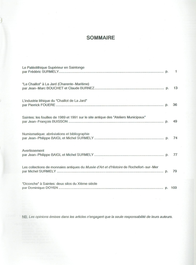 - Le Paléolithique Supérieur en Saintonge, par F. Surmely