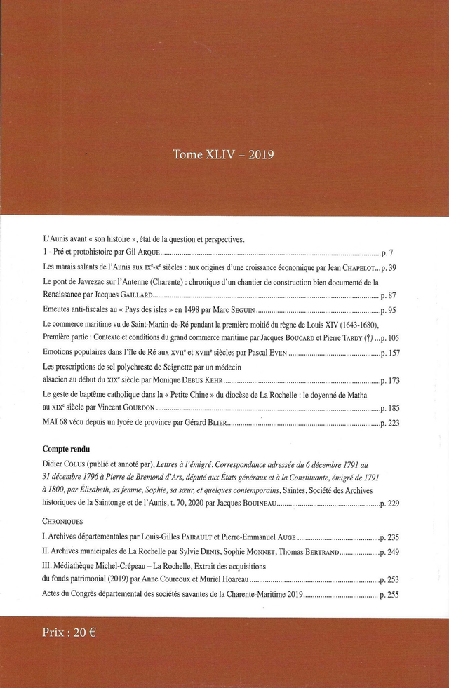Revue de la Saintonge et de l’Aunis - Tome XLIV - 2019