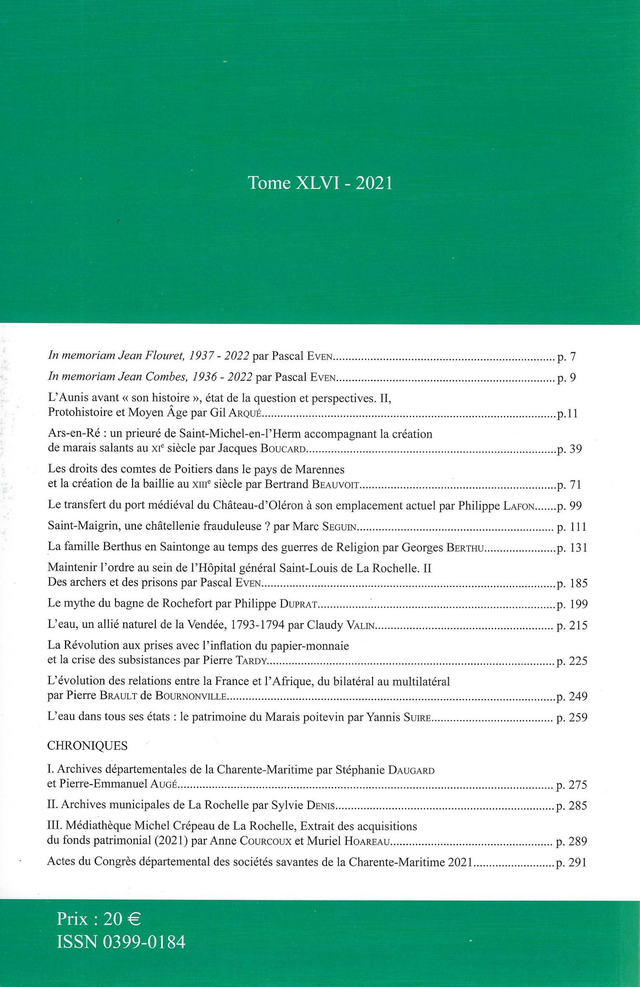 Revue de la Saintonge et de l'Aunis - Tome XLVI - 2021